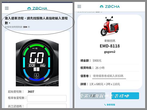 里程數與手機顯示確認後就完成租車了